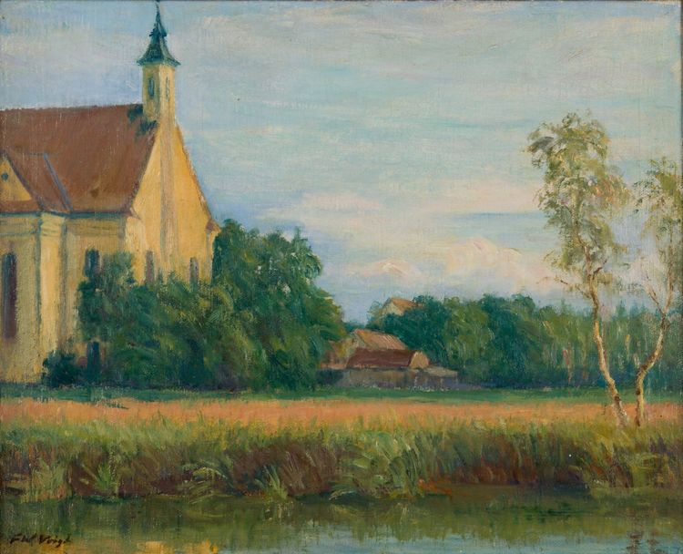 Mehrfach malte Voigt Motive in der Nähe des Ammersees, so Landschaften an der Amper und im Ampermoos.Franz Wilhelm Voigt, Wallfahrtskirche St. Rasso bei Grafrath, o. J., Öl auf Leinwand, 37,5 x 48 cm, © Kunstsammlung der Stadt Hof, Privatsammlung Wolfgang und Sabine Rüger