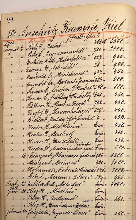 Text: Regina M. FischerLITERATURMünchner Stadtbibliothek / Monacensia, Lg 219/II, Brakl & Thannhäuser. Moderne Kunsthandlung, Kundenbuch vom 1. Nov. 1909 bis 31. Dez. 1923, S. 26.